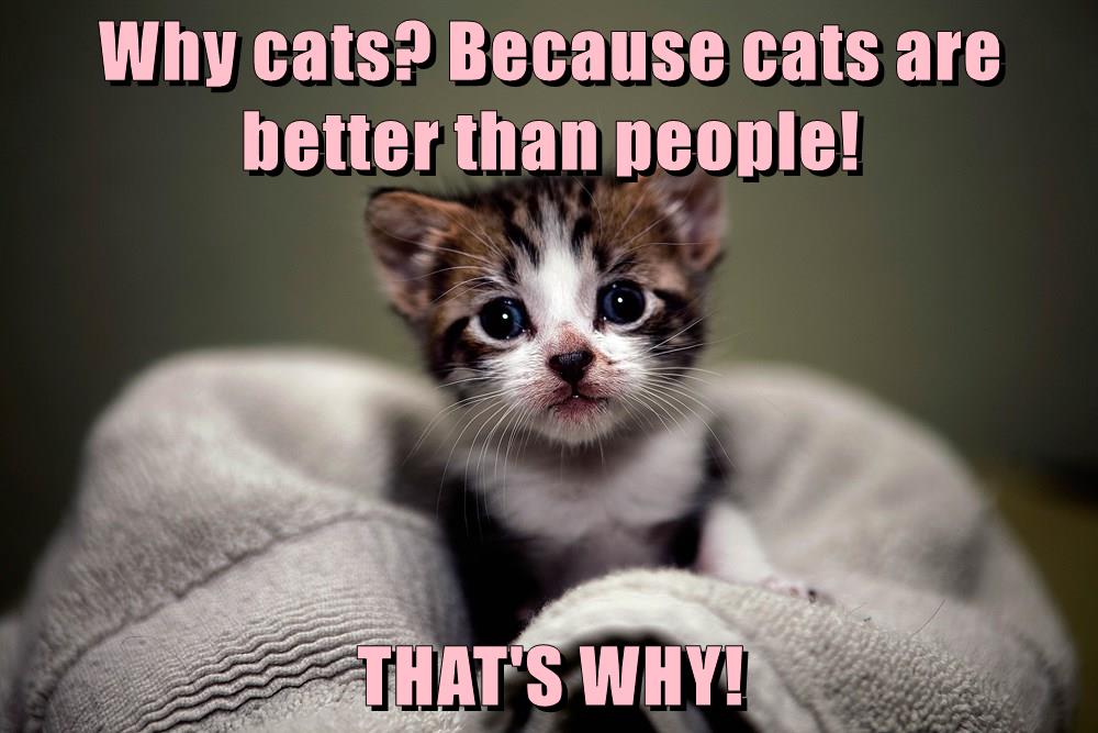 Cats, on the other hand, are just little moody balls of fur that hiss and purr and scratch. Cats are better than dogs. Dog lovers and cat lovers. It seems to give them a sense of purpose. Many pet owners also agree that cats communicate better than dogs since you can easily read their body language.